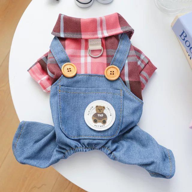 Dress your furry friend in style with these adorable dog overalls. Designed with a playful and childlike charm, these pet clothes instantly turn your pup into the star of every walk, playdate, or photo session. Made from lightweight polyester, they provide a soft and breathable fit that keeps your dog comfortable all day long. Perfect for small to medium-sized pets, these overalls combine cuteness with practicality.