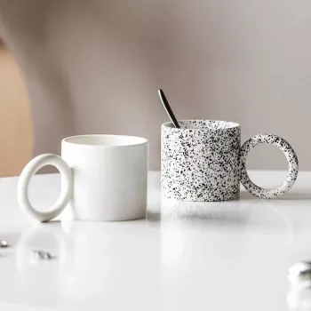 Elegant Ceramic Big Ear Mug – White Latte & Cappuccino Cup for Couples